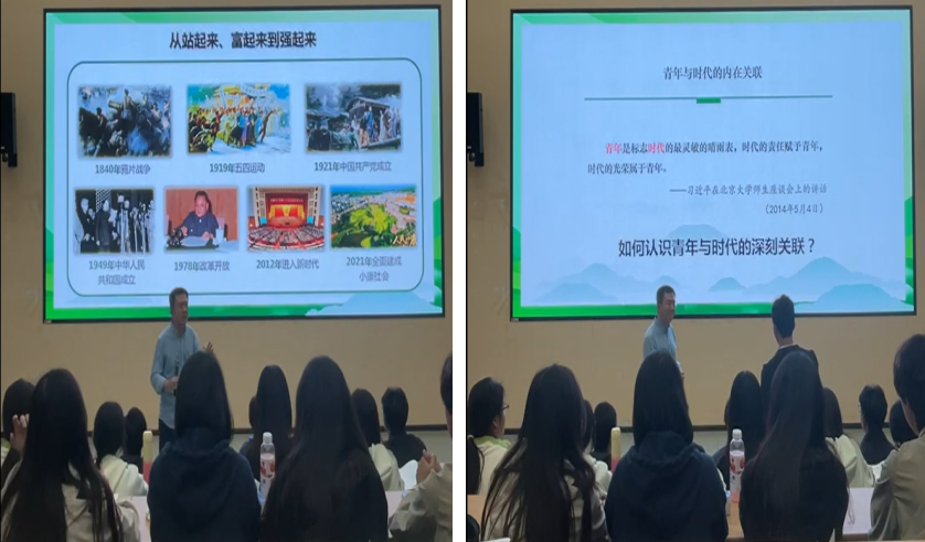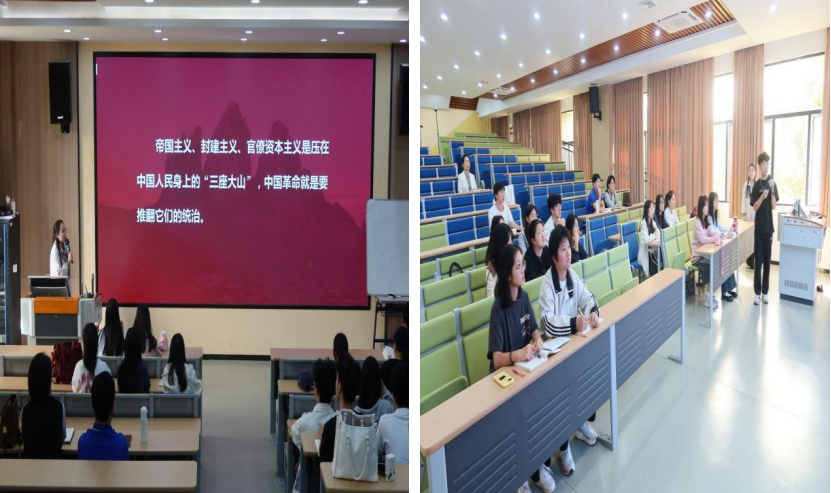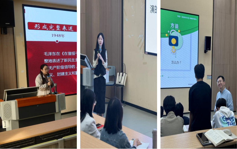 孔令瑶老师在《新民主主义革命的总路线》课堂上以经典历史剧《觉醒年代》作为课程导入,通过理论讲授、互动提问、案例分析、学生汇报展示等方式,为同学们讲授了一堂有情感温度、历史深度、理论厚度的思政课。