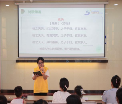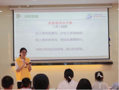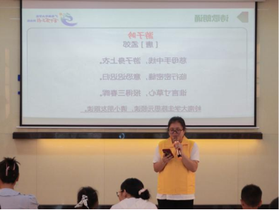 (陈思元同学带领孩子们朗读游子吟) (邹王韵同学带领孩子们朗读冬夜读书示子聿)