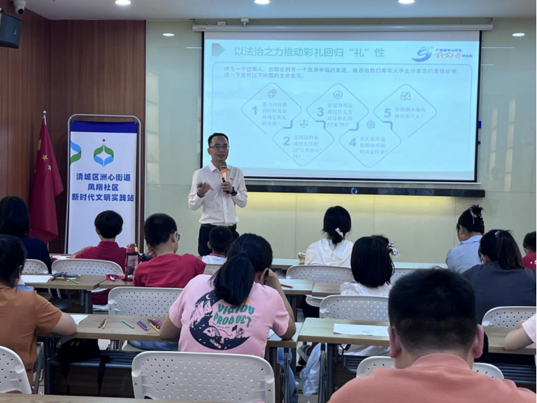 涵养文明新风,助力“百千万工程”。为了增强人们对彩礼法律的意识及调查人们对彩礼的看法,广东岭南职业技术学院马克思主义学院陈泓浩、梁雪仪、李灵老师带领礼法突击队全体同学到清远市清城区凤翔社区进行彩礼普法宣传活动。