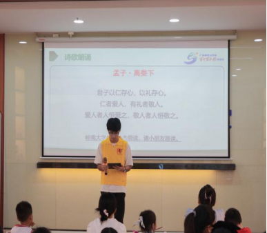 (林仕杰同学带领孩子们朗读孟子·离娄下) (谢瑶同学带领孩子们朗读桃夭)