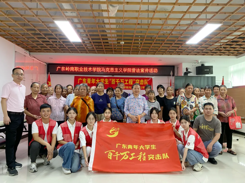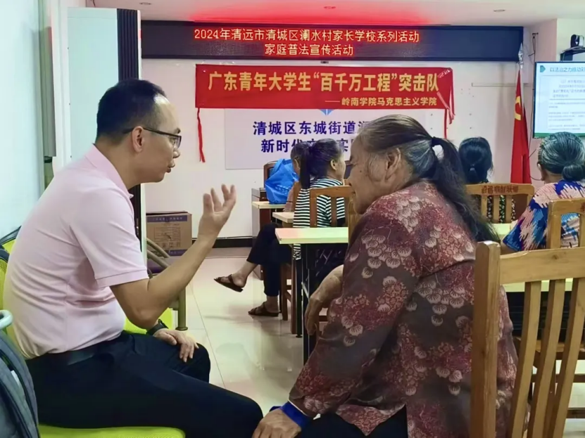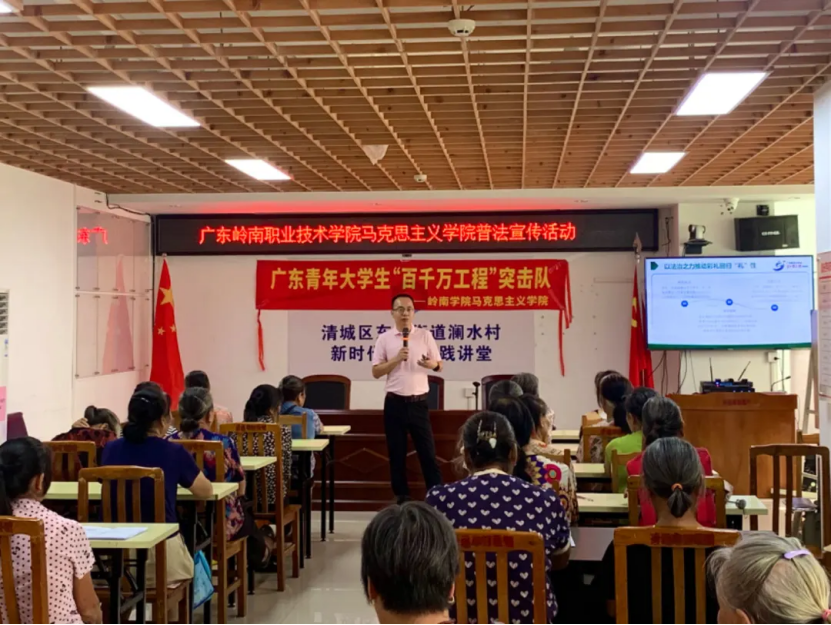 在金秋送爽的八月末,广东岭南职业技术学院马克思主义学院“百千万工程”普法突击队,于2024年8月26日踏上了清远市清城区东城街道澜水村的土地,开启了一场为期七天的法治盛宴,旨在深刻践行党的二十大精神,让习近平法治思想的甘霖滋养每一寸乡村热土,同时积极响应习近平总书记关于青年工作的重要指示,为中国式现代化的壮丽画卷添上青年学子挺膺担当的浓墨重彩一笔。普法突击队成员们,犹如一颗颗法治的种子,深深植根于澜水村的沃土之中,普法突击队精心策划了一系列内容丰富、形式多样的普法活动,力求让法治之花在乡村绽放得更加绚烂多彩。