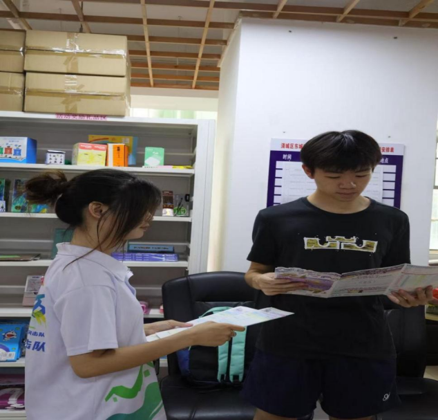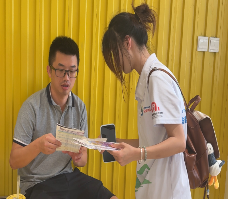 活动现场,招生团队的成员们热情地向过往居民发放学校简章,其中大健康相关专业的介绍页备受关注。不少阿姨们被丰富的专业内容吸引,主动围拢过来,认真聆听工作人员讲解。当介绍到健康管理专业时,突击队队员梁欣妍详细阐述道:“这个专业是顺应国家大健康战略新兴发展的学科,融合了预防医学、营养学、心理学等多领域知识。毕业后,学生能在医疗服务机构从事健康管理、咨询、指导等工作,市场需求大,就业前景广阔 。”阿姨们一边仔细翻阅简章,一边相互交流讨论,现场气氛热烈。