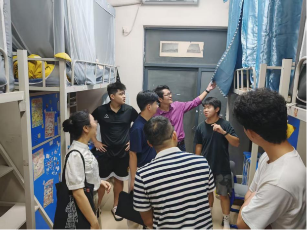 当晚21:30分,形策教研室教师与智能制造学院(弘毅书院)辅导员组成联合走访组,深入学生宿舍开展安全排查与基孔肯雅热疫情防控宣传。走访过程中,教师们逐一检查学生宿舍用电安全、卫生状况,并向学生普及蚊虫防控知识。有学生说:“老师既是长辈又像朋友,提醒我们注意卫生,又教我们防疫知识,感觉很温暖。”