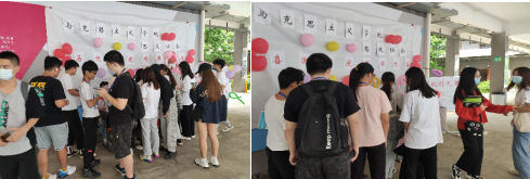 活动一开始,就受到同学们的极大关注。条幅列出不久,便吸引不少路过的同学,参与到有奖竞答的活动中。