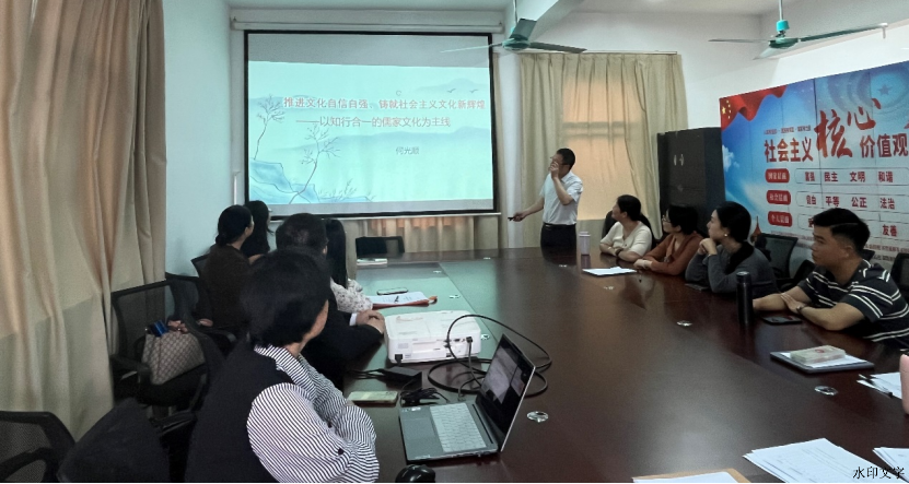 何教授的分享围绕建设具有强大凝聚力和隐藏力的社会主义意识形态、广泛践行社会主义核心价值观、提高全社会文明程度、繁荣发展文化事业和文化产业、增强中华文明传播力影响力五个方面展开分享。何教授以知行合一的儒家文化为主线,引经据典,深刻而又形象的给我们讲解了文化对于一个国家和民族的重要性。