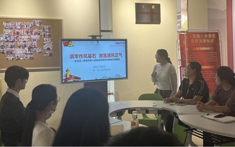 在专题学习环节,支部组织委员甘润芝同志以《筑牢作风基石,激荡清风正气——全党深入贯彻中央八项规定精神学习教育实践解读》为主题组织开展学习。通过“理论溯源—实践深化—行动转化”三维度解析框架,重点围绕改进工作作风、密切联系群众这一核心要义,从“再认识制度建设的政治逻辑、再部署监督执纪的关键环节、再行动推动常态长效”三个层面展开系统阐释,引导全体党员在学思践悟中深化对中央八项规定精神时代价值的系统性认知与思想淬炼,着力强化将制度优势转化为治理效能的政治自觉,切实以严实作风护航新征程使命任务。