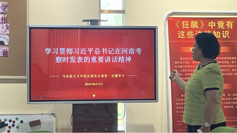 首先,任慧丽带领全体党员同志进行第一议题学习,主题为《学习贯彻习近平总书记在河南考察时发表的重要讲话精神》。习近平总书记在河南考察时强调,新时代新征程,河南要认真落实党中央关于中部地区加快崛起、黄河流域生态保护和高质量发展等战略部署,坚持稳中求进工作总基调,全面深化改革开放,着力建设现代化产业体系和农业强省,着力改善民生、加强社会治理,着力加强生态环境保护,着力推动文化繁荣兴盛,以高质量发展和高效能治理奋力谱写中原大地推进中国式现代化新篇章。