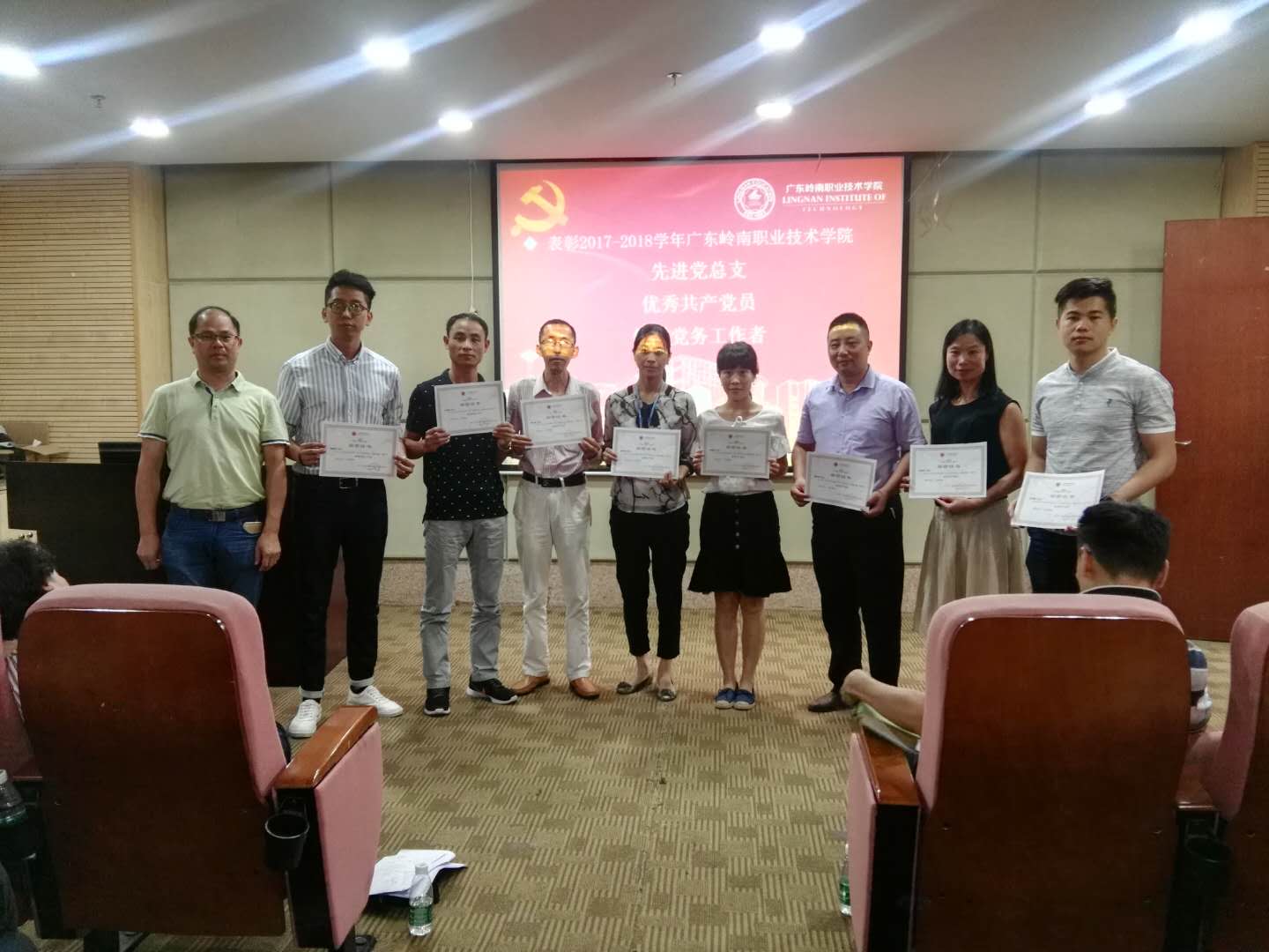 优秀党员朱玉福(左边第四个)领奖