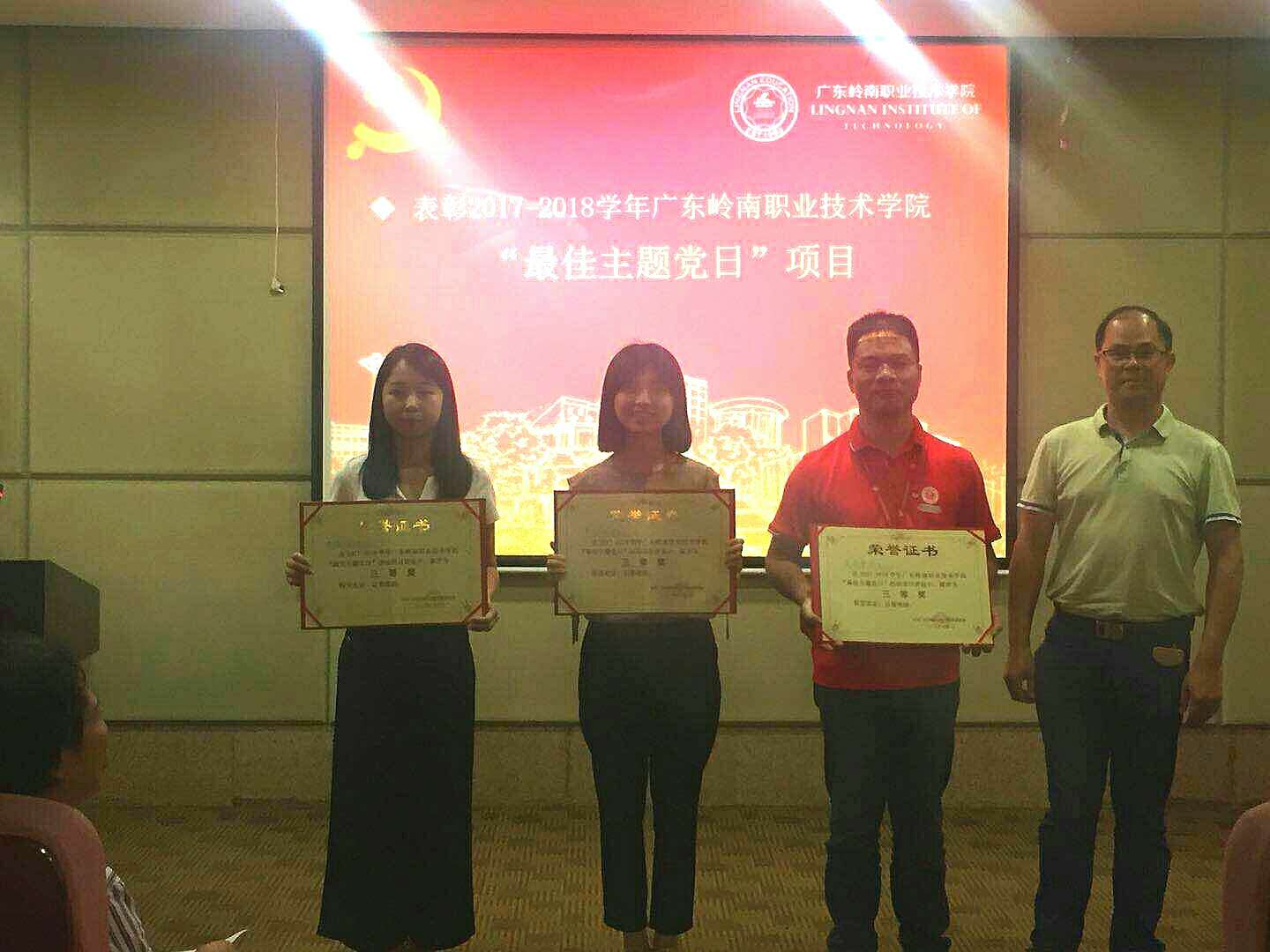 比赛结束后,还颁发了2017-2018第二学期学院优秀党员和优秀党干部名单,思政党支部朱玉福同志和周嘉鸿同志分别获得相应殊荣。