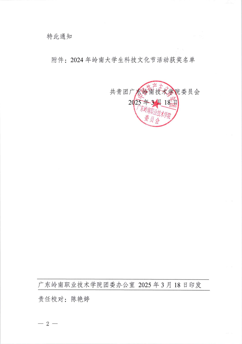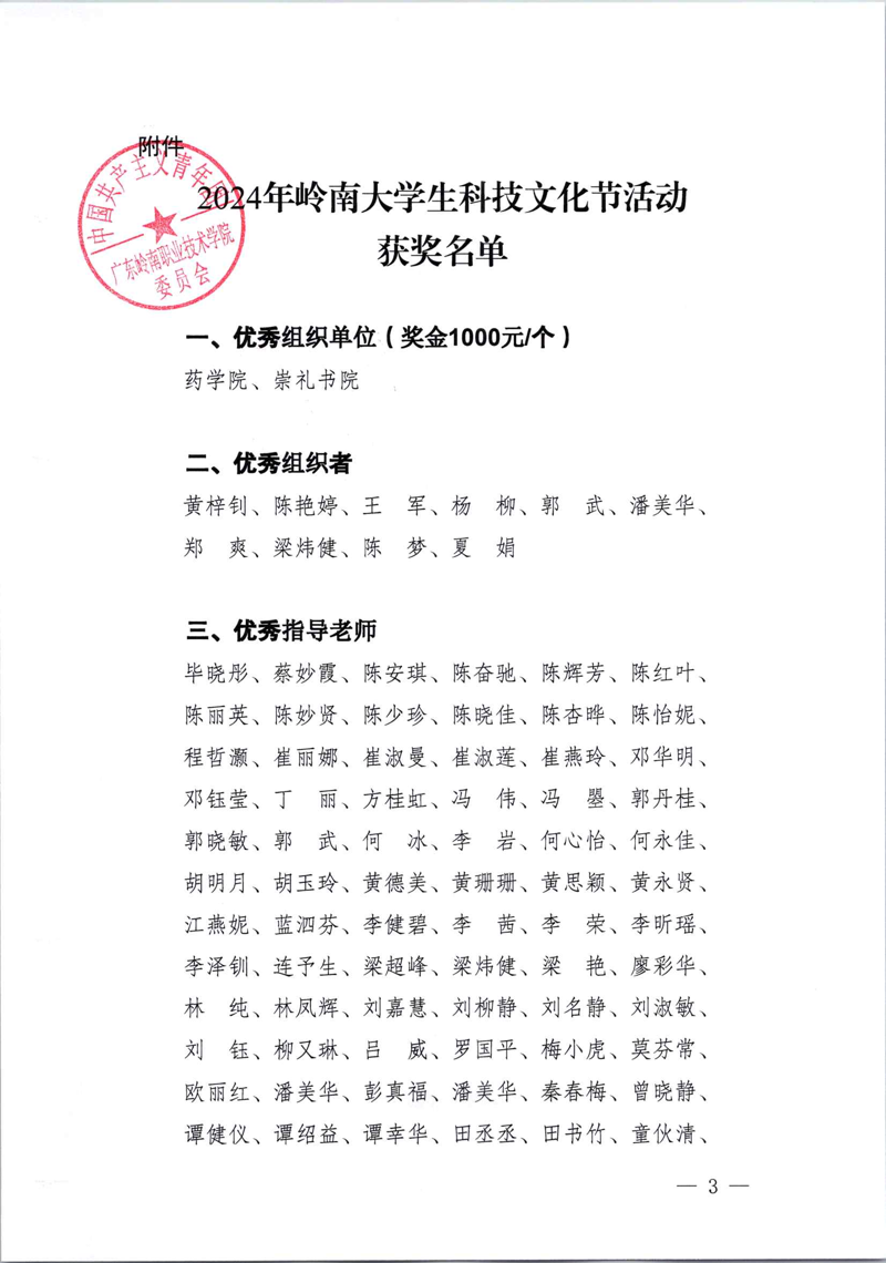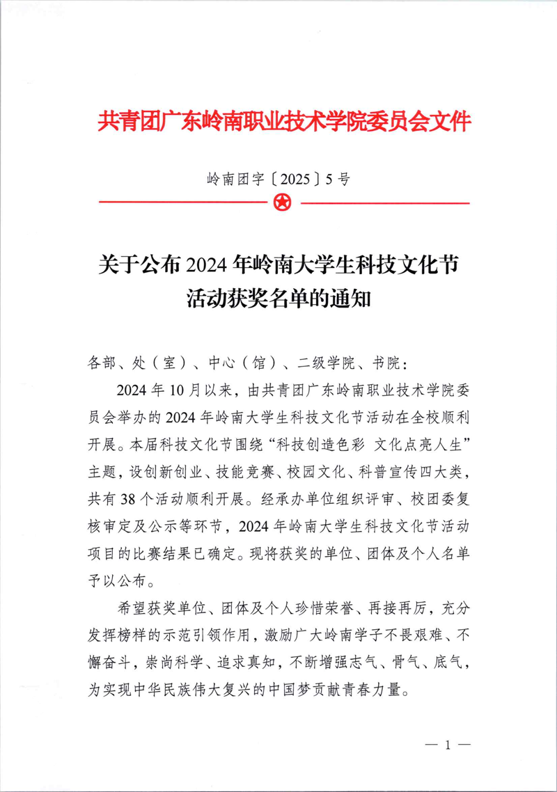 关于公布2024年岭南大学生科技文化节活动获奖名单的通知