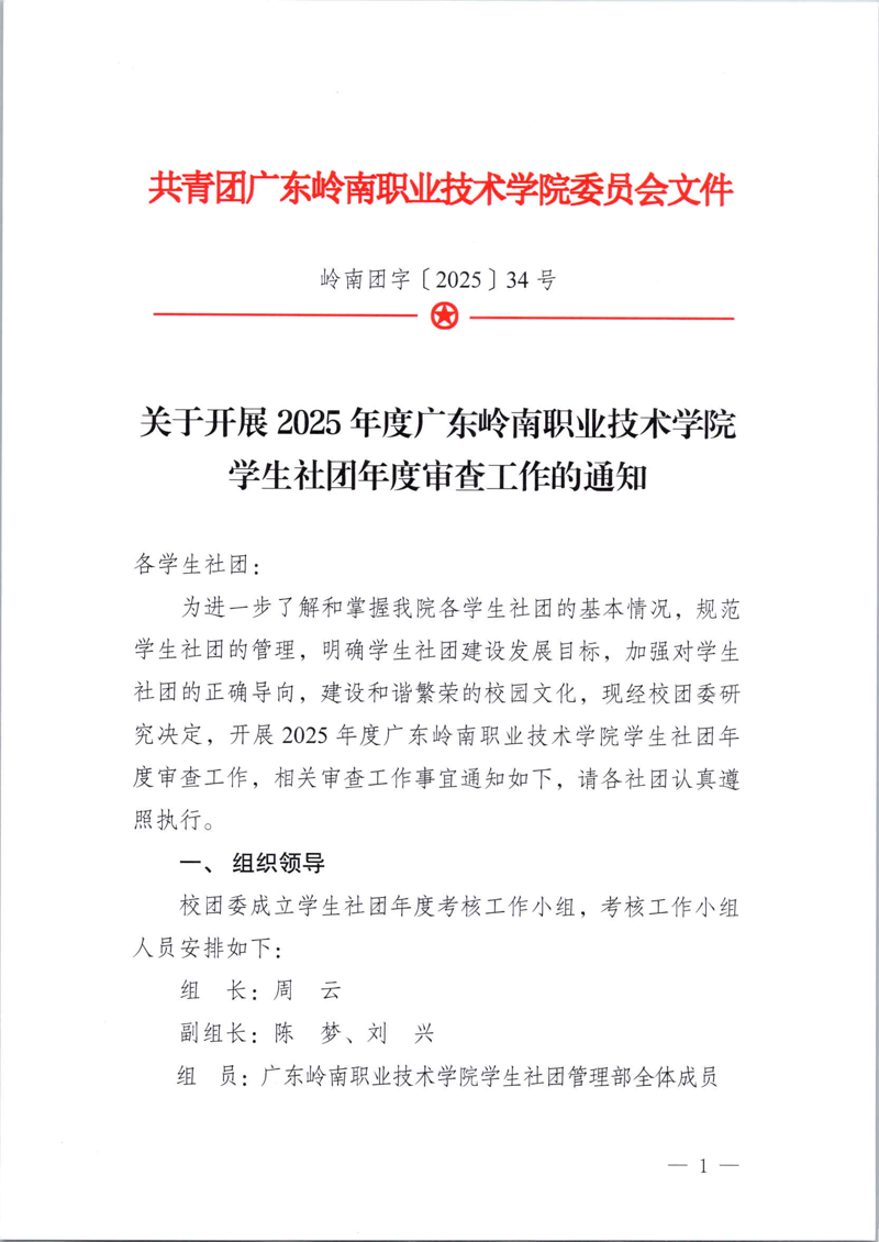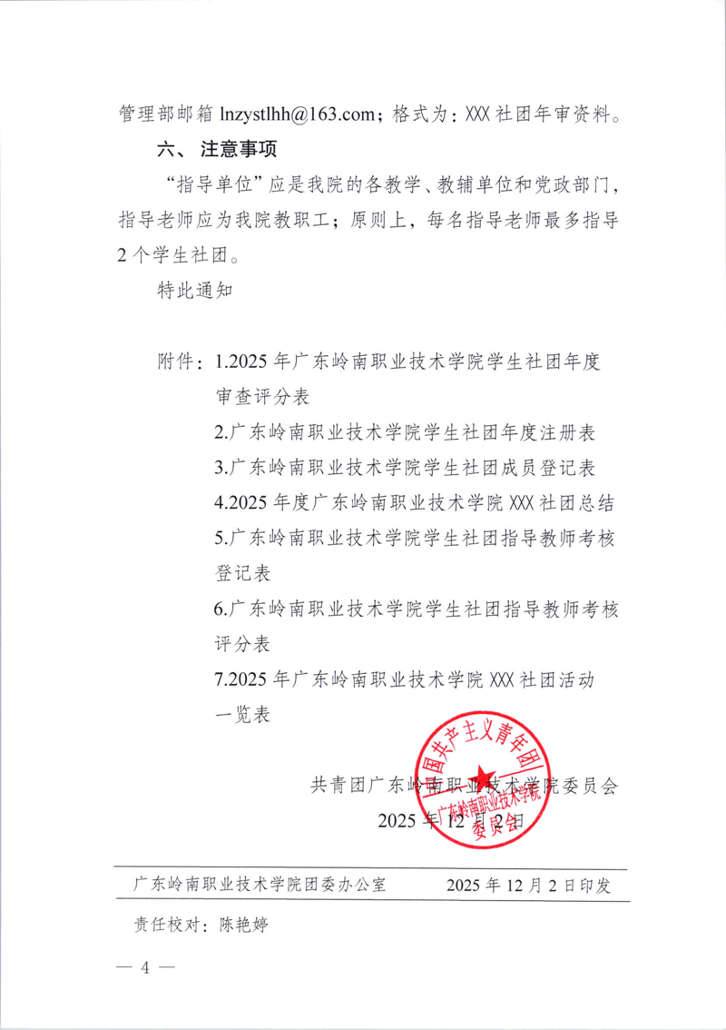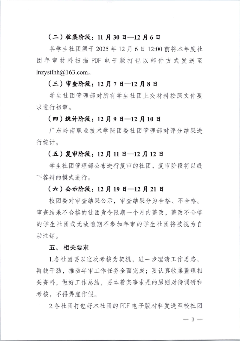 关于开展2025年度广东岭南职业技术学院学生社团年度审查工作的通知
