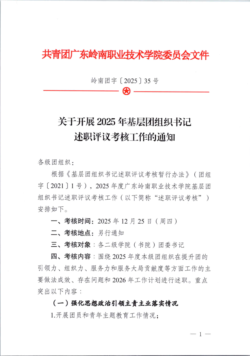 关于开展2025年基层团组织书记述职评议考核工作的通知