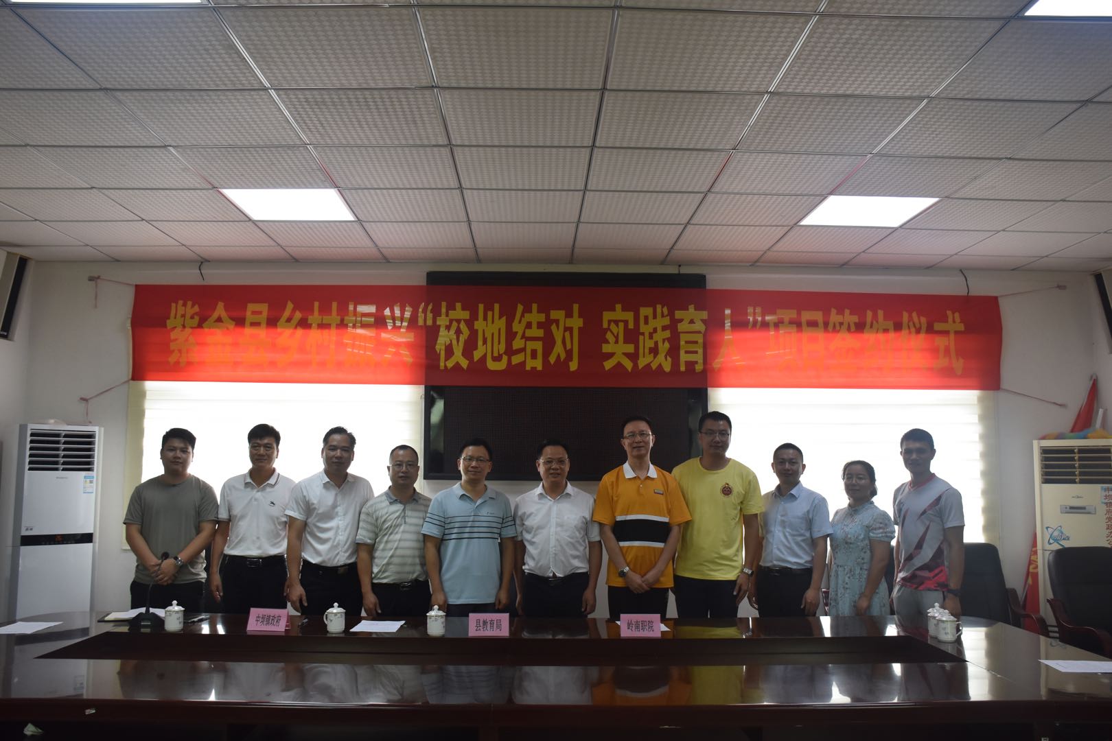 8月5日中午,河源市紫金县教育局与广东岭南职业技术学院签订乡村振兴“校地结对、实践育人”共建实践育人基地合作协议签约。通过高校与地方政府的合作,推动紫金县乡村振兴,全面建设小康社会,实现精准扶贫。