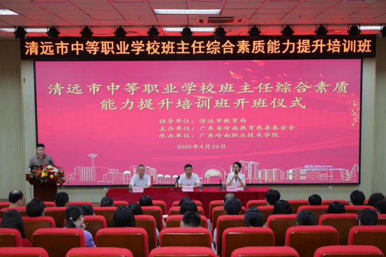为深入贯彻国家教育方针,落实立德树人根本任务,进一步提升清远市中等职业学校班主任的综合素质和专业能力。4月23日,由清远市教育局指导、广东省岭南教育慈善基金会主办、广东岭南职业技术学院承办的清远市中等职业学校班主任综合素质能力提升培训班在岭南职院清远校区开班,清远市教育局职业与高等教育科负责人潘志新、广东省岭南教育慈善基金会秘书长何淑莹、广东岭南职业技术学院乡村振兴教育学院副院长潘仁东以及来自清远市14所中职学校的30名老师出席了开班仪式。