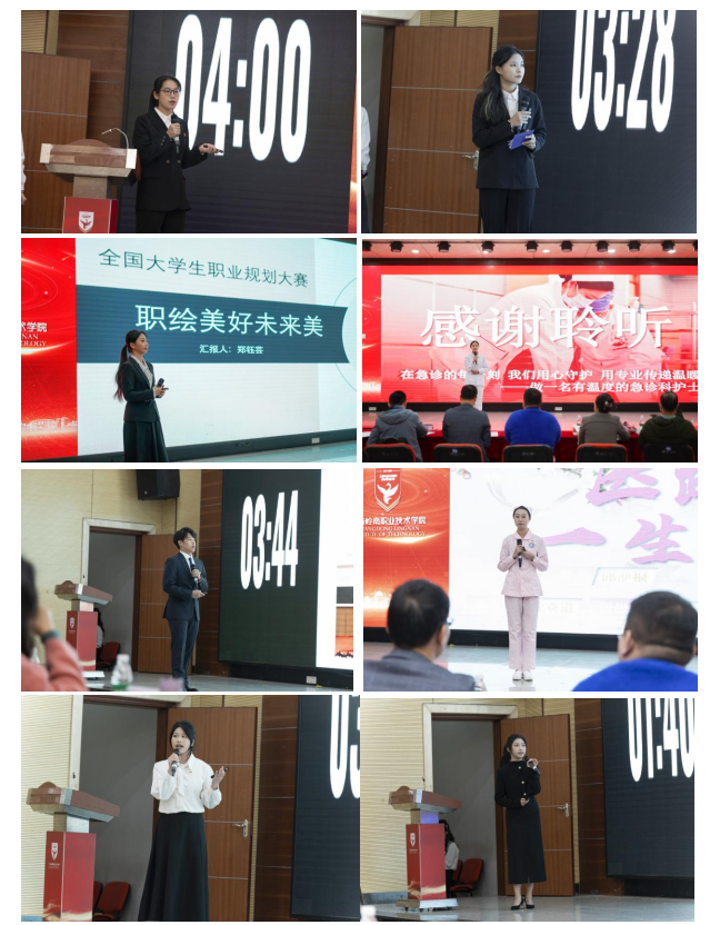 决赛现场,选手们以精彩的PPT演示为载体,结合各自的职业兴趣和求职目标,进行了清晰流畅的演讲。他们深入剖析自我,详细阐述个人的职业目标、发展路径及实施计划,生动展示了自身的实践经历、与岗位的契合度以及个人发展潜力。评委老师根据选手的陈述和现场表现进行提问,剖析其职业规划演讲中的亮点与可改进之处,并提出了具体的职业发展建议。