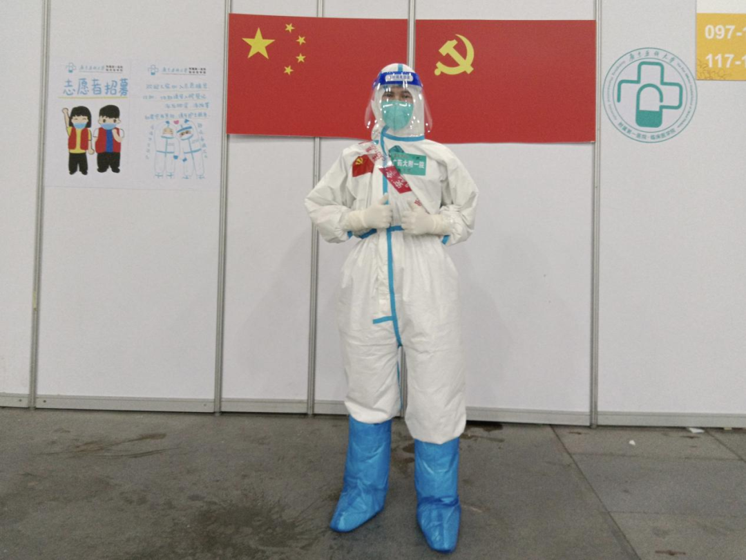 2022年11月10日上午,他毅然奔赴疫情防控最前沿琶洲方舱医院,用实际行动践行自己的入党决心。凌晨,即将迎来了第一批患者。他急需为患者铺床,准备物资,穿着密不透风的防护服高强度的收大量病人汗水由上往下的滑落到脚,大量的出汗出舱后洗手衣从上湿到下里里外外都是湿透。当春天悄悄来临的时候,在我们的精心救治下,陆续迎来了患者的康复出院,当一批批患者满怀感激的向我们挥手告别,高高兴兴地登上接他们回家的大巴车时,他手握大喇叭喊到:祝各位舱友出舱顺利,工作顺利,阁家幸福。患者挥挥手道别的一句一句的谢谢中冒出来一句:“你们也早点回家!”这个回应感动了在场的所有人员,也是对医护人员、志愿者们最大肯定,因为,我们心在一起。面对种种困难大家迎难而上舱内建设越来越好,环境越来越好,设立了爱心树让患者留言祝福加油打气,通过医院的募捐书籍开放了读书角让舱内多了一份书香气。除了舱内工作以外还在出舱后协助酒店后勤物资老师搬运物资。反复练习防护服的穿脱加强防护意识。