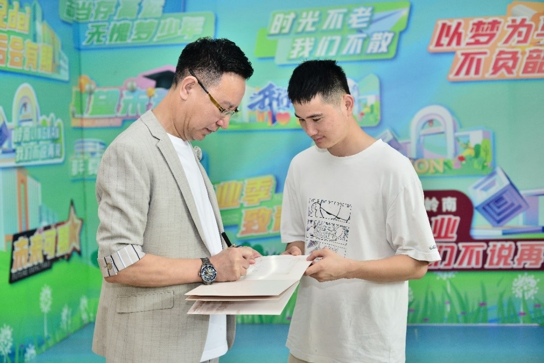 柴克生书记,李峻副校长在现场还给岭南学子们亲笔签名,写下祝福。勉励同学们将“明德 笃学 砺能 自强”校训记在心中,带在身上。不断更新观念、知识和能力,脚踏实地、奋进作为。做新时代有为青年,矢志追求更有高度、更有境界、更有价值的人生。