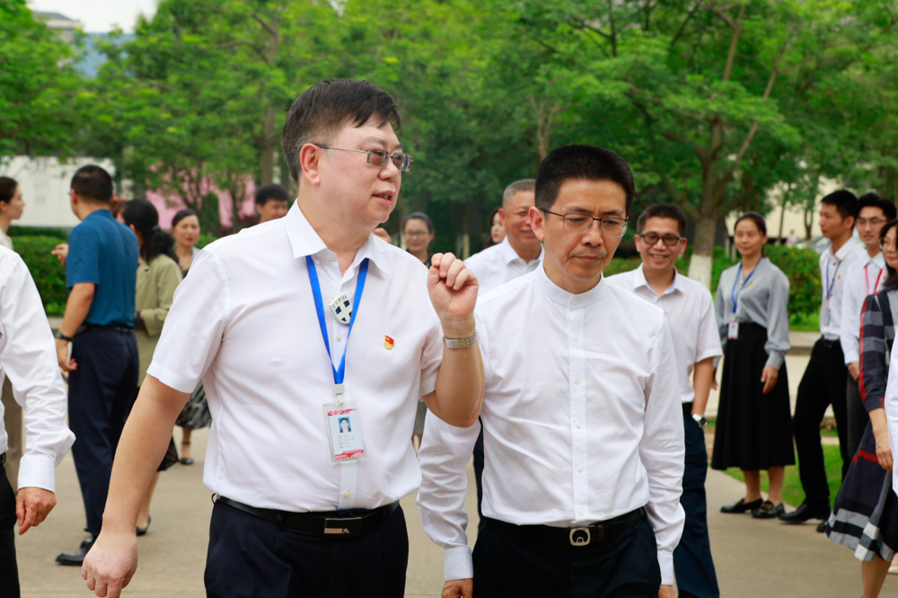 浙江历史悠久,人文荟萃,素称“人文渊薮”“文物之邦”,更是“新时代全面展示中国特色社会主义制度优越性的重要窗口”。当江南文化遇见岭南文化,会有怎样的互动与对话?5月22日下午,方太集团董事长茅忠群,浙江中基控股集团董事长严海国一行到我校清远校区参观交流。广州岭南教育集团创始人贺惠山,我校校长劳汉生,党委书记柴克生,集团副总裁黄世平、胡振华,副校长张爱国,纪委书记李浩,副校长翟树芹,集团行政总监汪丽娟等热情接待了来宾一行。