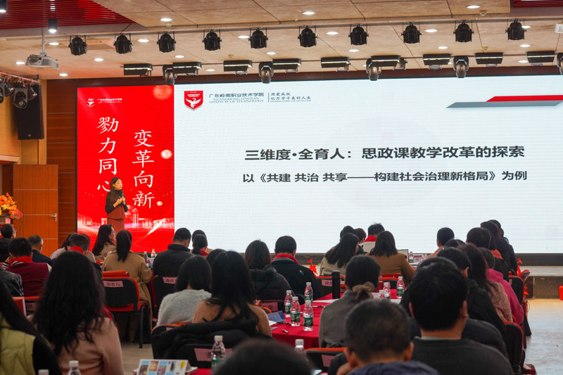 在会议中,荣获2024年课堂教学改革比赛一等奖的杨娟老师,围绕“三维度·全育人:思政课教学改革的探索”主题进行了深入分享。她从课程理论导学、课堂实践任务展示以及创新意识培养三个关键维度,详细阐述了《共建 共治 共享——构建社会治理新格局》这一课程的教学改革经验与取得的显著成效。她的分享不仅为思政课教学创新树立了卓越的典范,还极大地激发了在场教师们对教学改革的信心与热情。