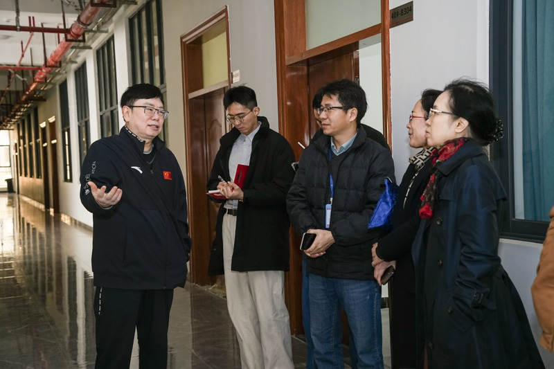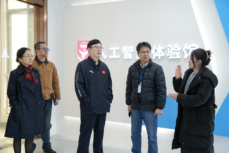信息工程学院院长佘学文汇报了学院在推进高水平专业群建设、人工智能体验馆升级、人才培养创新等方面的阶段性成果,并提出教学建设等方面存在的问题。随后,劳汉生一行走访了砺能楼401-403实训室及人工智能体验馆,现场了解教学设施运行情况。