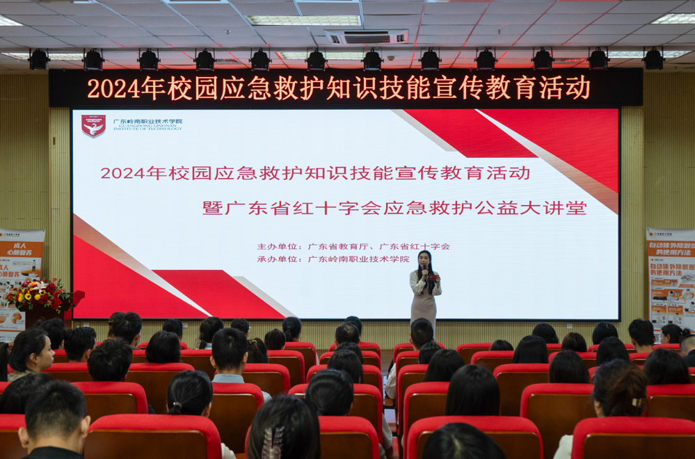 为贯彻落实学校急救教育试点建设工作,推动应急救护知识技能在校园普及,增强师生的安全意识与自救互救能力,10月24日下午,由广东省教育厅、广东省红十字会联合主办,我校承办的2024年校园应急救护知识技能宣传教育活动暨广东省红十字会应急救护公益大讲堂在清远校区图书馆报告厅举行。培训由广东省红十字会资深应急救护师资梁洁玲、许国强授课,学校辅导员、宿舍管理员等学生工作一线人员共116余人参加。