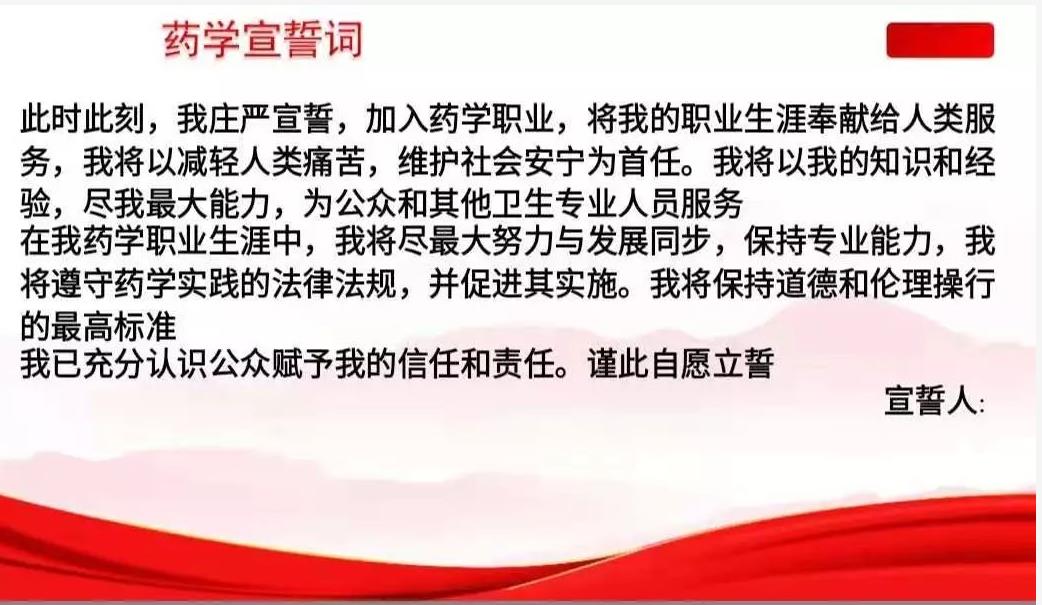 这次药学宣誓大会让同学对专业有了更清晰的理解,对我们的使命与担当有更深刻的认识,提高了我们责任意识。我们不忘初心,牢记使命作人类社会的白衣战士,为人类的健康事业共同努力奋斗。