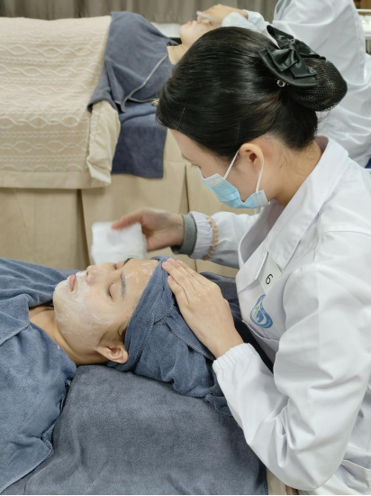 比赛现场,气氛热烈而紧张。本次竞赛内容为面部美容护理,主要考查选手职业形象、护理准备、顾客接待、面部清洁按摩、工作区域维护安全卫生及结束工作共6项内容。从面部清洁的温柔呵护,到按摩手法的精准娴熟,选手们全神贯注,每一个步骤都尽显专业素养。她们的双手在脸庞上舞动,仿佛在绘制一幅幅美丽的画卷,展现出对美的独特理解与追求。