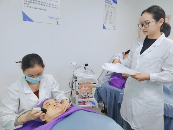 此次培训有线上学习和线下培训两个阶段。在线上部分,各位老师通过网络平台参与课程学习,深入了解1+X证书制度的政策背景、美容光电仪器操作技能的重要性及其行业发展趋势等内容。线下的五天集中技能强化培训则在惠州市培训考核站点开展,我院教师与各院参训教师们深入探讨了美容光电仪器的操作技术和教学培训方法,并进行了详细的考评标准讲解与考评训练。