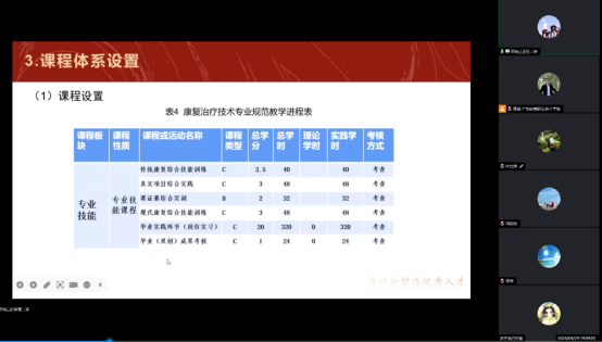 为高质量完成2024级专业人才培养方案的修订工作,持续深化教育教学改革促进我院专业建设,高质量发展,全面提升人才培养质量。医学应用技术学院于近日通过腾讯会议召开了2024级专业人才培养方案论证会。通过对各专业的人才培养方案进行“问诊”和“把脉”,明确专业人才培养目标、合理构建专业课程体系、凝练专业特色,推动我院专业可持续发展。我院叶桂荣院长、聂健副院长、行业企业专家8人、各位专业负责人、校内专业教师8人、专业优秀毕业生代表6人及教务员合计30人出席本次论证会。会议采取专业组论证形式,各专业专家组论证各专业,叶院、聂院、各专业主任、教务员全程参会。