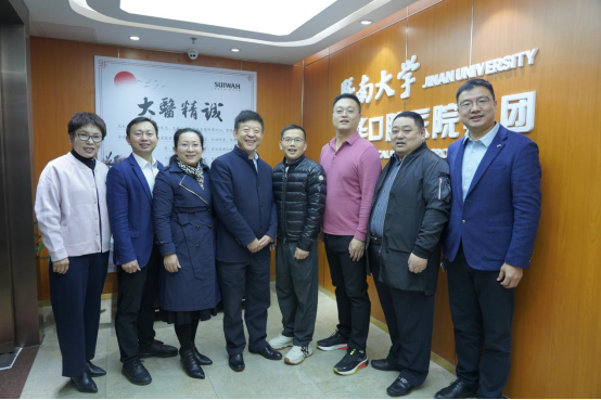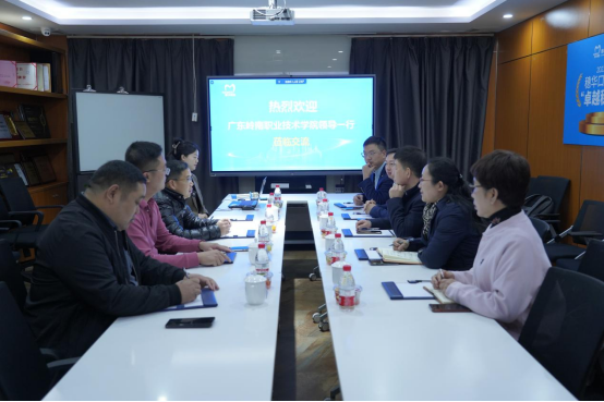 2025 年 1 月 10 日,我校党委书记柴克生、副校长翟树芹、校长助理兼教务处处长辛增辉、医学应用技术学院执行院长叶桂荣、党总支书记兼副院长周云一行到广州穗华口腔医院进行合作洽谈,受到广州穗华口腔医院集团总裁郑俊飞、总裁特别助理邱志强、医疗中心医务副院长黄斌、总裁办文化经理林煜哲和总裁秘书贺婷的热情接待。