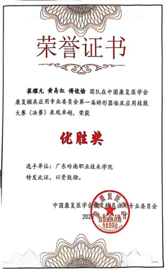 最后综合理论竞答与实操环节的表现,我校代表队最终荣获优胜奖。此次参赛经历为团队带来了远超奖项的宝贵收获。一方面,通过与全国顶尖同行的现场切磋,团队深入了解了当前矫形器领域的最新临床应用趋势与技术前沿,特别是在解决复杂临床案例的思路与精细化操作上获益良多。激烈的技能比拼暴露了我们在理论知识的深度与广度、以及临场应变能力上的提升空间,为今后的教学与训练指明了精准化的改进方向。另一方面,这次深度融合“医工结合”理念的实战演练,极大地锻炼了团队成员间的协作精神与将理论知识转化为解决实际临床问题的能力。