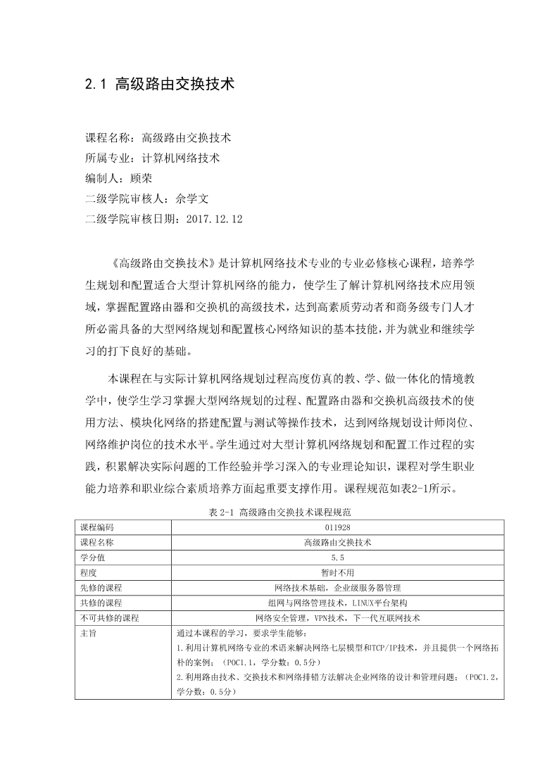 计算机网络技术专业《高技路由器技术》课程教学诊改案例-课程规范