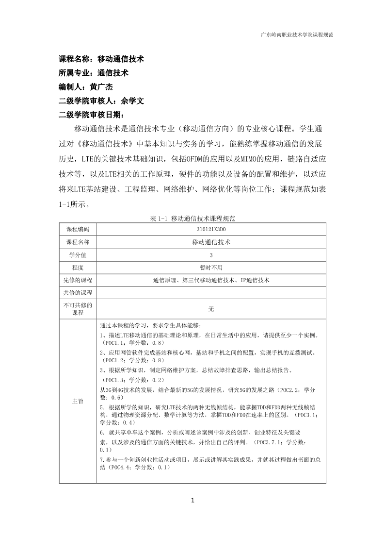 通信技术专业《移动通信技术》课程教学诊改案例-课程规范 来源: 发布时间:2020-02-15 10:17:50 浏览次数: 次 【字体:小 大】 教案1仿真实验1软件介绍-2课时.pdf教案3仿真实验3RRU安装-4课时.pdf教案2仿真实验2BBU安装-4课时.pdf教案4仿真实验4建立基站和网管的连接-2课时.pdf教案5仿真实验5物理配置-2课时.pdf教案6仿真实验6传输层配置-4课时.pdf教案7仿真实验7无线和软件配置-4课时.pdf 分享到: 【打印正文】