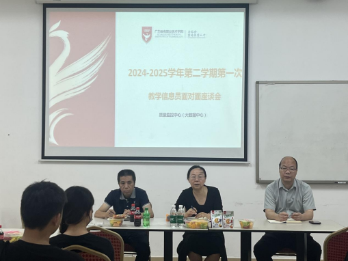 2025年5月22日,质量监控中心(大数据中心)在清远校区崇礼213课室召开本学期首次教学信息员座谈会,教务处(图书馆)副处长何云、主管伍剑峰和各专业教学信息员代表出席会议。会议由质量监控中心(大数据中心)主任王颖主持。