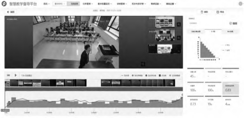 在教学实施流程指标维度,分析教学的注意力分布、教学轨迹位置、教师课堂提问类型,体现学生的关注度、发现学生学习过程中存在的问题,了解教师教学表现,激发学生主动思考和提升学习兴趣,发现教学存在的问题,优化教学设计。
